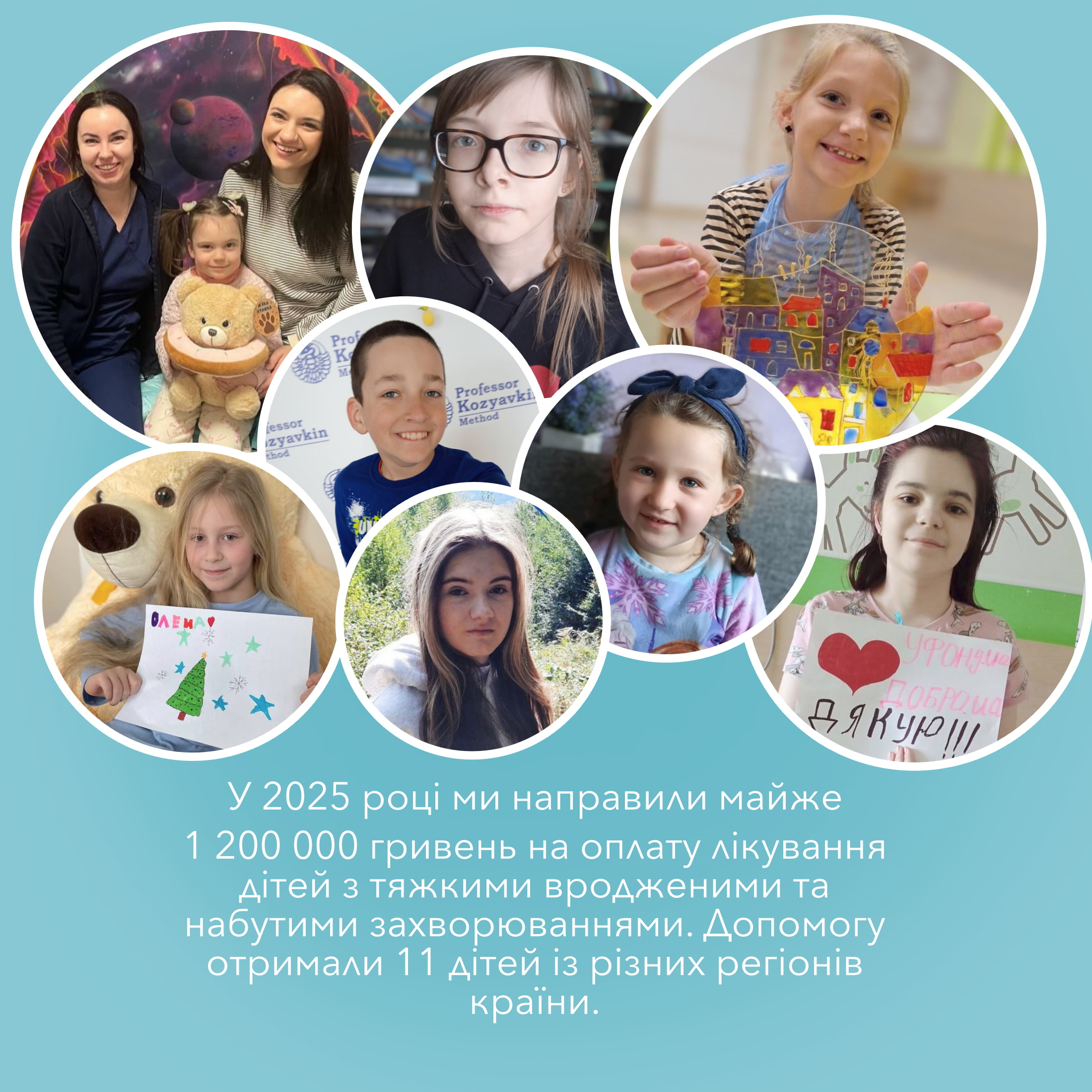 Для Українського фонду Допомоги (Уфонд) 2025 рік став роком особливої відповідальності перед дітьми. Перед тими, хто бореться з тяжкими захворюваннями, та перед тими, хто росте без батьківської підтримки. Саме дитячі долі були та є центром нашої роботи та головним сенсом всього, що ми робили протягом року. 2025 рік ще раз показав, наскільки важливими є системна допомога, довіра та спільні зусилля небайдужих людей. Підбиваючи підсумки, ми хочемо розповісти про головне — про те, заради чого ми працюємо щодня. Діти, яким допомога врятувала життя У 2025 році ми направили майже 1 200 000 гривень на оплату лікування дітей з тяжкими вродженими та набутими захворюваннями. Допомогу отримали 11 дітей із різних регіонів країни. Завдяки підтримці партнерів та благодійників нам вдалося сплатити лікування, операції та курси реабілітації для дітей з тяжкими захворюваннями.